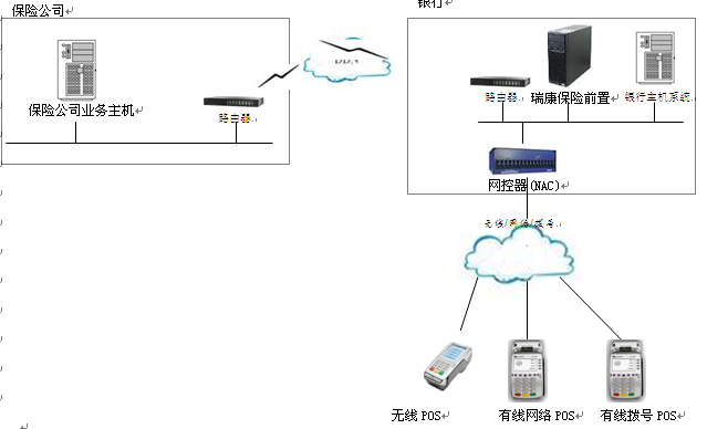 在本方案中,放置在保險公司的POS具備與銀行及保險公司同時進行數(shù)據(jù)交互的能力,在進行保險收費時,先在POS上進行保單查詢,查詢成功后進行銀行卡支付,銀行卡支付完成后,POS將會通知保險系統(tǒng)保單支付成功,保險終端將會生成保單,完成交易。